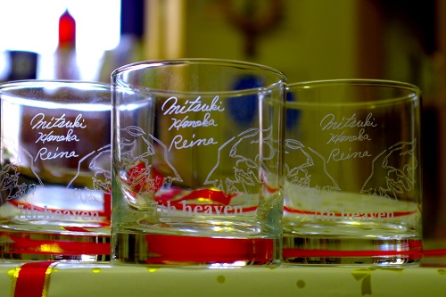 知り合いのお嬢様の卒業記念に、ロックグラスをお友達とおそろいでご注文です。
